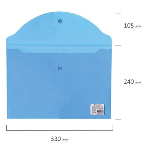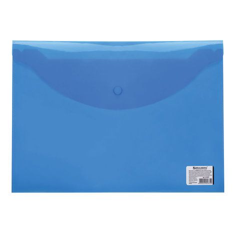 —Папка-конверт с кнопкой А4 BRAUBERG, прозрачная, синяя, до 100 листов, 0,15мм 1/15/90
