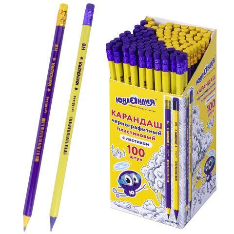 Карандаш ч/гр НВ пластиковый корпус ассорти с резинкой Юнландия 1/100 купить оптом и в розницу в Санкт-Петербурге