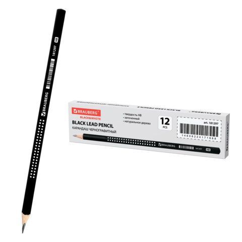 Карандаш ч/гр HB трехгранный, черный с рисунком, без резинки BRAUBERG Black&White 1/12/144 купить оптом и в розницу в Санкт-Петербурге