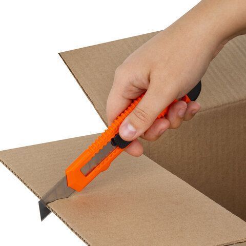 Нож канцелярский 18мм с фиксатором упаковка с европодвесом Staff 1/24/576 купить оптом и в розницу в Санкт-Петербурге