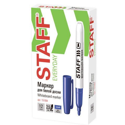 Маркер для доски синий 2,5мм тонкий корпус круглый наконечник STAFF 1/12 купить оптом и в розницу в Санкт-Петербурге
