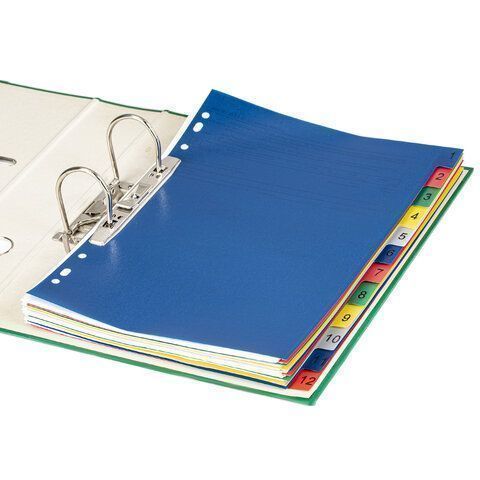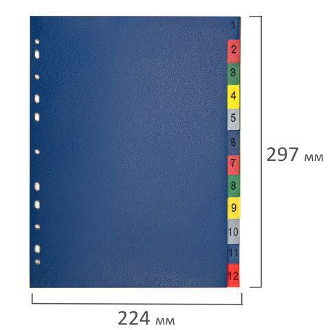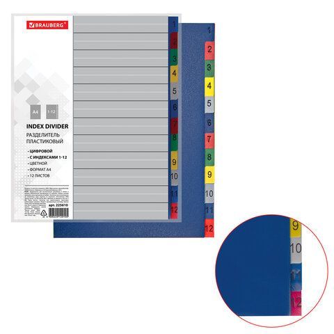 —Разделитель пластиковый BRAUBERG, А4, 12 листов, цифровой 1-12, оглавление, цветной,