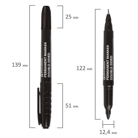 Маркер перманентный черный 0,8/3мм двусторонний наконечники Double BRAUBERG 1/12 купить оптом и в розницу в Санкт-Петербурге
