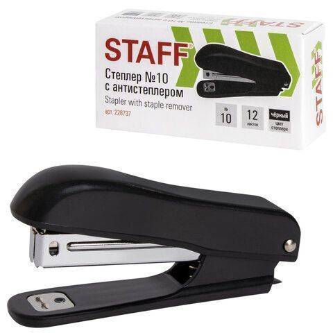 Степлер №10 до 12 листов,  с антистеплером, черный STAFF Profit
