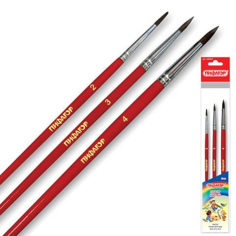 —Кисти 3шт пони круглая № 2,3,4 Школьник ПИФАГОР 1/12/288