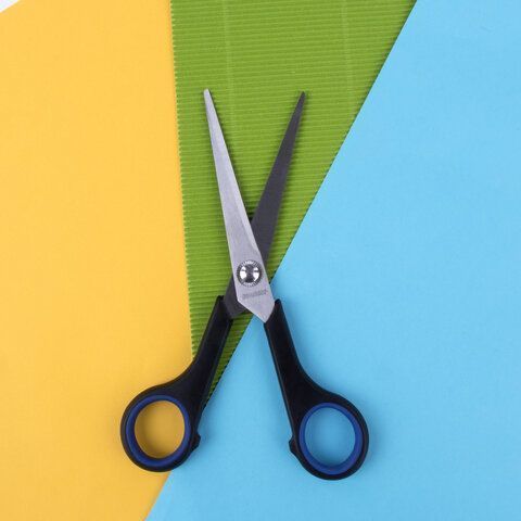 Ножницы 165мм метал черно-синие вставки европодвес Soft Grip Brauberg 1/12 купить оптом и в розницу в Санкт-Петербурге