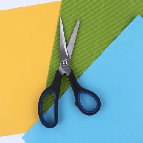 Ножницы 190мм метал черно-синие вставки европодвес Soft Grip Brauberg 1/12 купить оптом и в розницу в Санкт-Петербурге