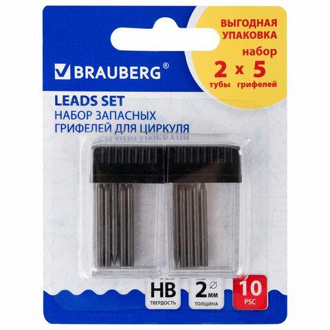 —Грифели запасные для циркуля набор 2 тубы по 5шт (10х24мм) BRAUBERG 1/24