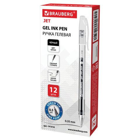 —Ручка гелевая черная 0,5мм линия 0,35мм BRAUBERG 1/12/1728