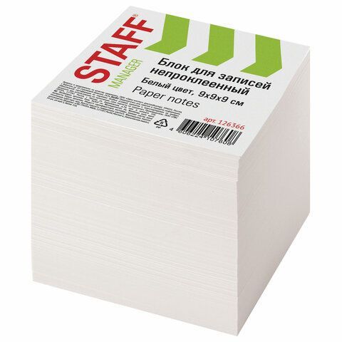 Блок для записей 9х9х9 белый непрокл. белизна 90-92% STAFF 1/18 оптом и в розницу в Санкт-Петербурге купить