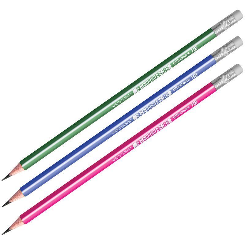 Карандаш ч/гр HB с ластиком, трехгранный, пластик, заточен, ассорти OfficeSpace 1/12/72 купить оптом и в розницу в Санкт-Петербурге