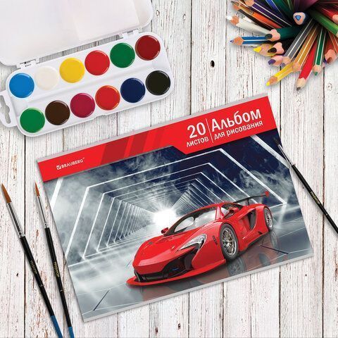 Альбом для рисования 20л А4 скоба, обложка картон Автомир BRAUBERG 1/20/60 оптом и в розницу в Санкт-Петербурге купить