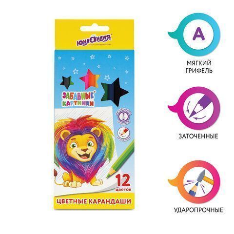 —Карандаши цветные ЮНЛАНДИЯ Забавные картинки 12цв
