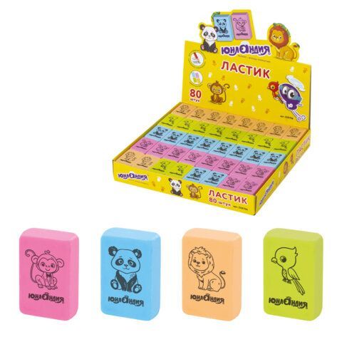 Ластик ЮНЛАНДИЯ Зверушки 28х18х10мм купить оптом и в розницу в Санкт-Петербурге