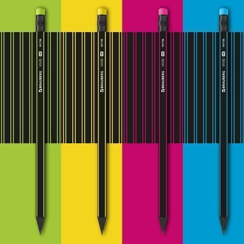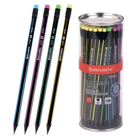 Карандаш ч/гр BRAUBERG "VIVID", 1 шт., HB, с ластиком, корпус ассорти 1/72 купить оптом и в розницу в Санкт-Петербурге