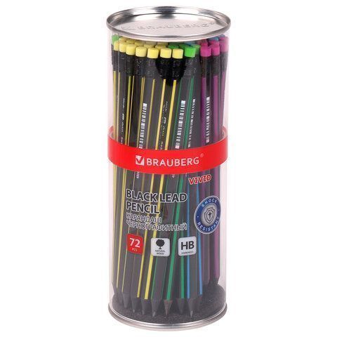 —Карандаш ч/гр BRAUBERG "VIVID", 1 шт., HB, с ластиком, корпус ассорти 1/72