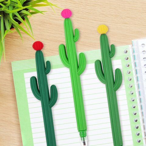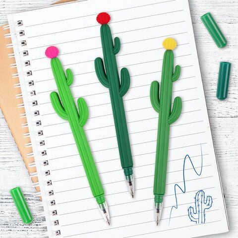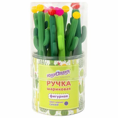 —Ручка фигурная шариковая мягкий силиконовый корпус, ассорти, СИНЯЯ, 0,7мм ЮНЛАНДИЯ Кактус 1/12