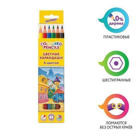 Карандаши цветные 06цв пластиковые, классические, грифель мягкий 3 мм ЮНЛАНДИЯ Домики 1/24 купить оптом и в розницу в Санкт-Петербурге
