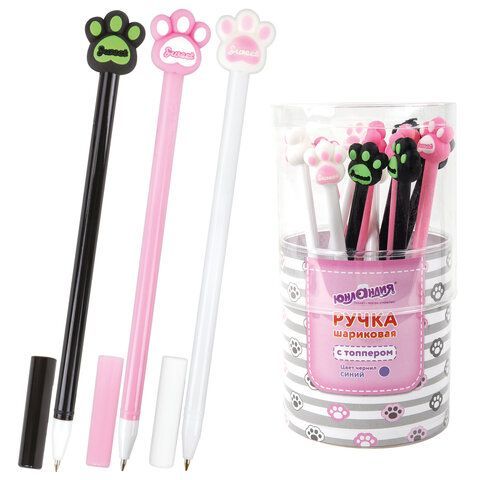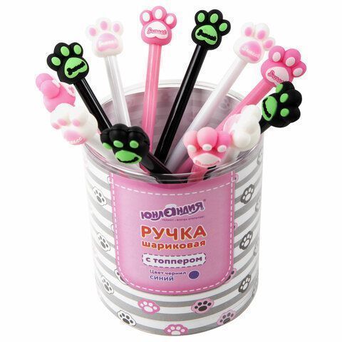 Ручка с топпером шариковая ЮНЛАНДИЯ Лапка корпус ассорти СИНЯЯ узел 0,7мм 1/12 купить оптом и в розницу в Санкт-Петербурге