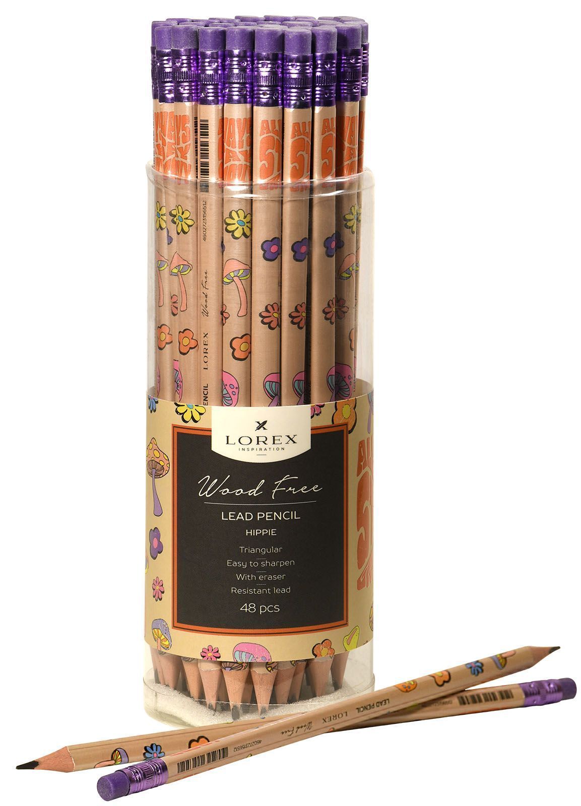 Карандаш ч/гр НВ заточенный трехгранный LOREX WOOD FREE HIPPIE 1/48/576 купить оптом и в розницу в Санкт-Петербурге