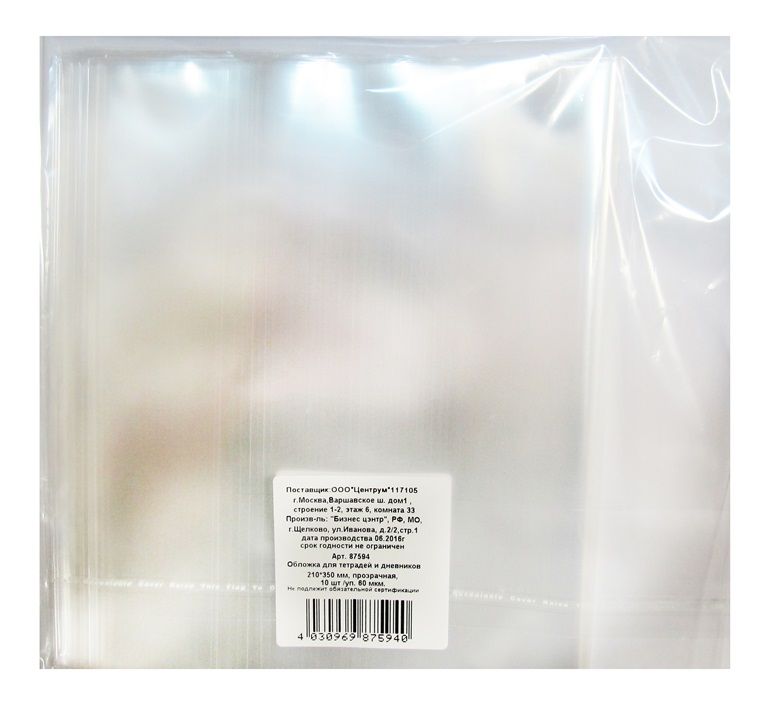 Обложка 190х236 60мкм для тетради и дневника 10шт ПП 1/10/100 оптом и в розницу в Санкт-Петербурге купить
