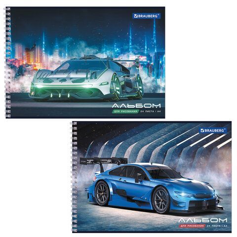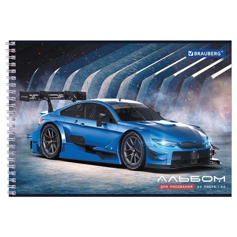 —Альбом для рисования 24л А4 гребень обложка картон BRAUBERG Спорткар 1/10/40