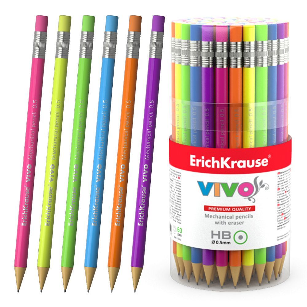 —Карандаш ч/гр НВ механический 0,5мм корпус ассорти ErichKrause Vivo 1/60