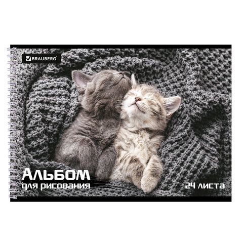 —Альбом для рисования 24л А4 гребень обложка картон BRAUBERG Питомцы 1/10/40