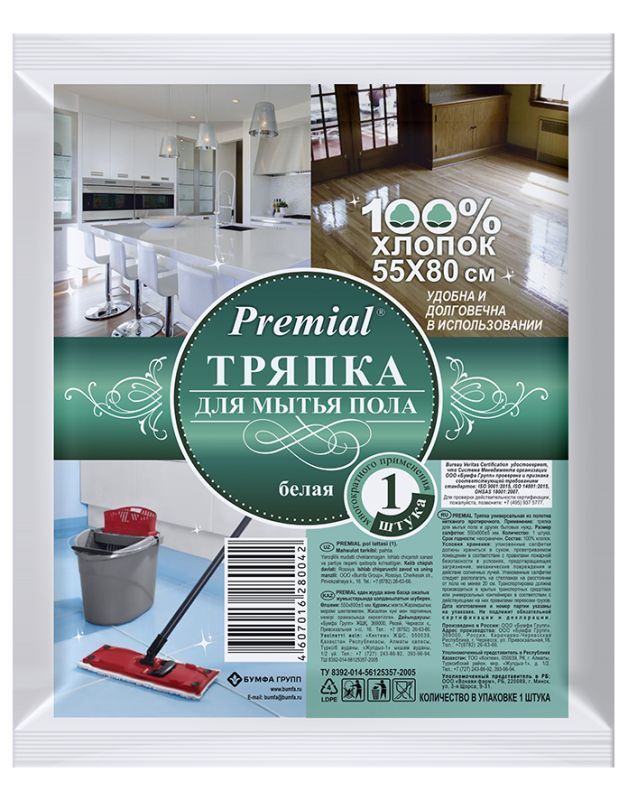 Тряпка для мытья пола (55х80) Premial 100% хлопок 190г/м2 1/30 купить в Санкт-Петербурге с доставкой оптом и в розницу