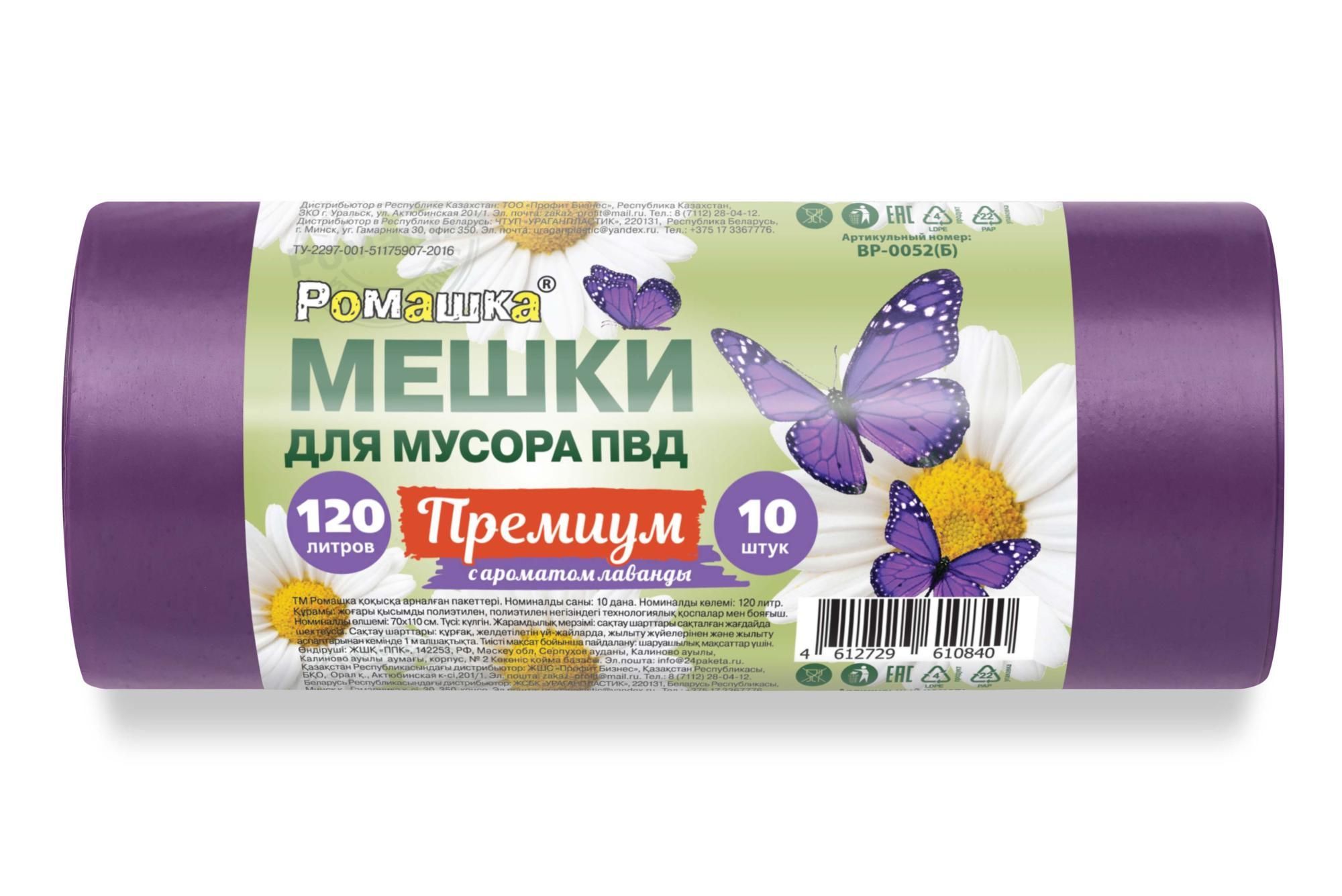 Мешок для мусора 120л рулон ПВД (70х110)-35 фиолетовый (лаванда) ПРЕМИУМ 50г Ромашка (10шт) 1/12 купить в Санкт-Петербурге с доставкой оптом и в розницу
