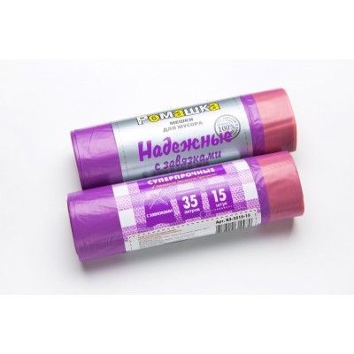 Мешок для мусора 35л рулон ПСД (50х60)-18 с завязками фиолетовые НАДЕЖНЫЕ 10,66г Ромашка (15шт) 1/30 купить в Санкт-Петербурге с доставкой оптом и в розницу