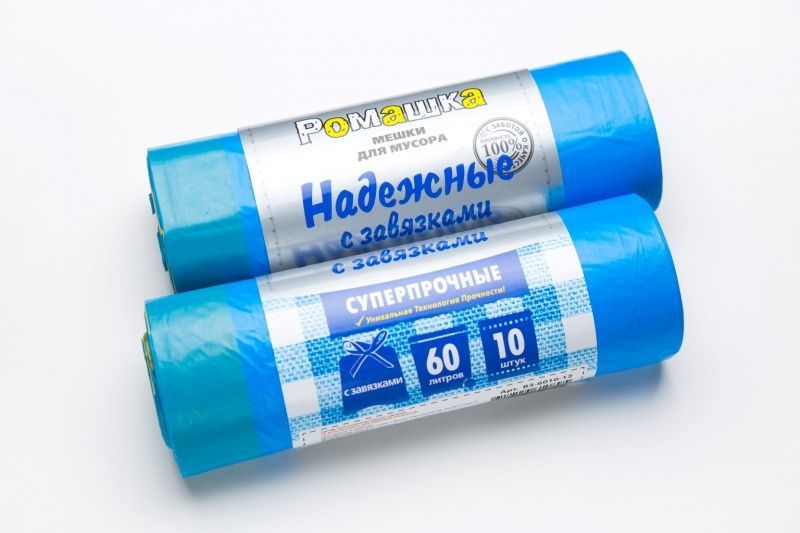 Мешок для мусора 60л рулон ПСД (59х69)-23 с завязками синие НАДЕЖНЫЕ 18,4г Ромашка (10шт) 1/24 купить в Санкт-Петербурге с доставкой оптом и в розницу