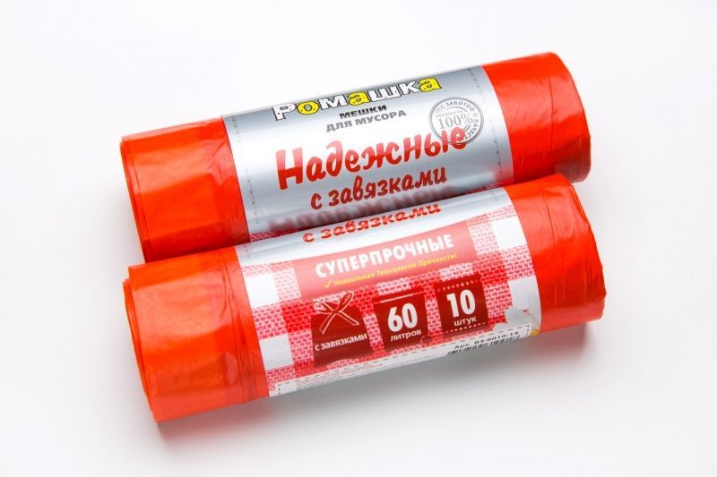 Мешок для мусора 60л рулон ПСД (59х69)-23 с завязками красные НАДЕЖНЫЕ 18,4г Ромашка (10шт) 1/24 купить в Санкт-Петербурге с доставкой оптом и в розницу