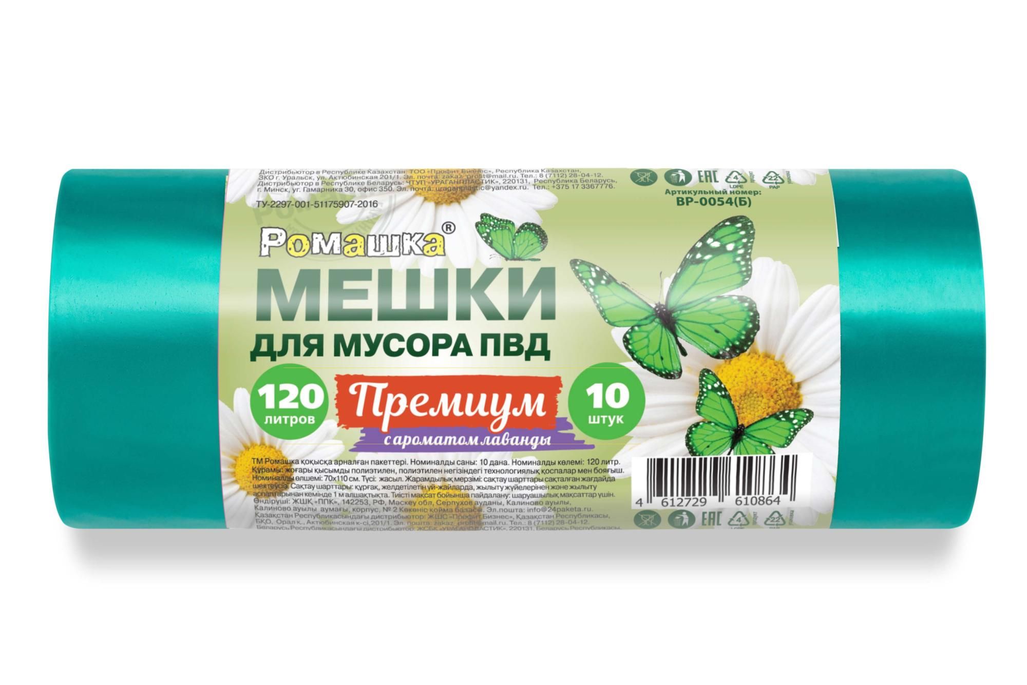 Мешок для мусора 120л рулон ПВД (70х110)-35 зеленый (лаванда) ПРЕМИУМ 50г Ромашка (10 шт) 1/12 купить в Санкт-Петербурге с доставкой оптом и в розницу