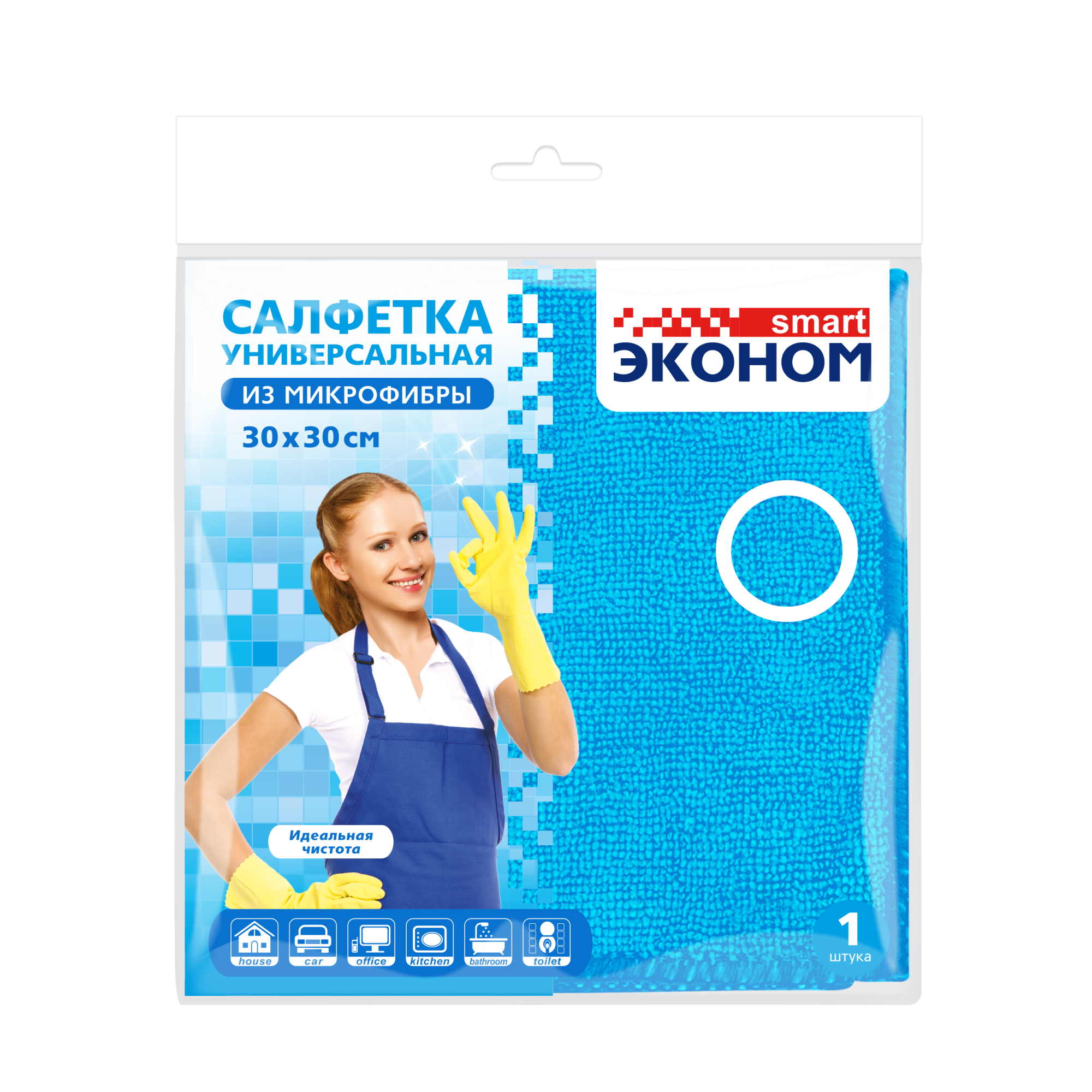 —Салфетка микрофибра (30х30) универсальная в индивид,упаковке ассорти Эконом Smart 1/60