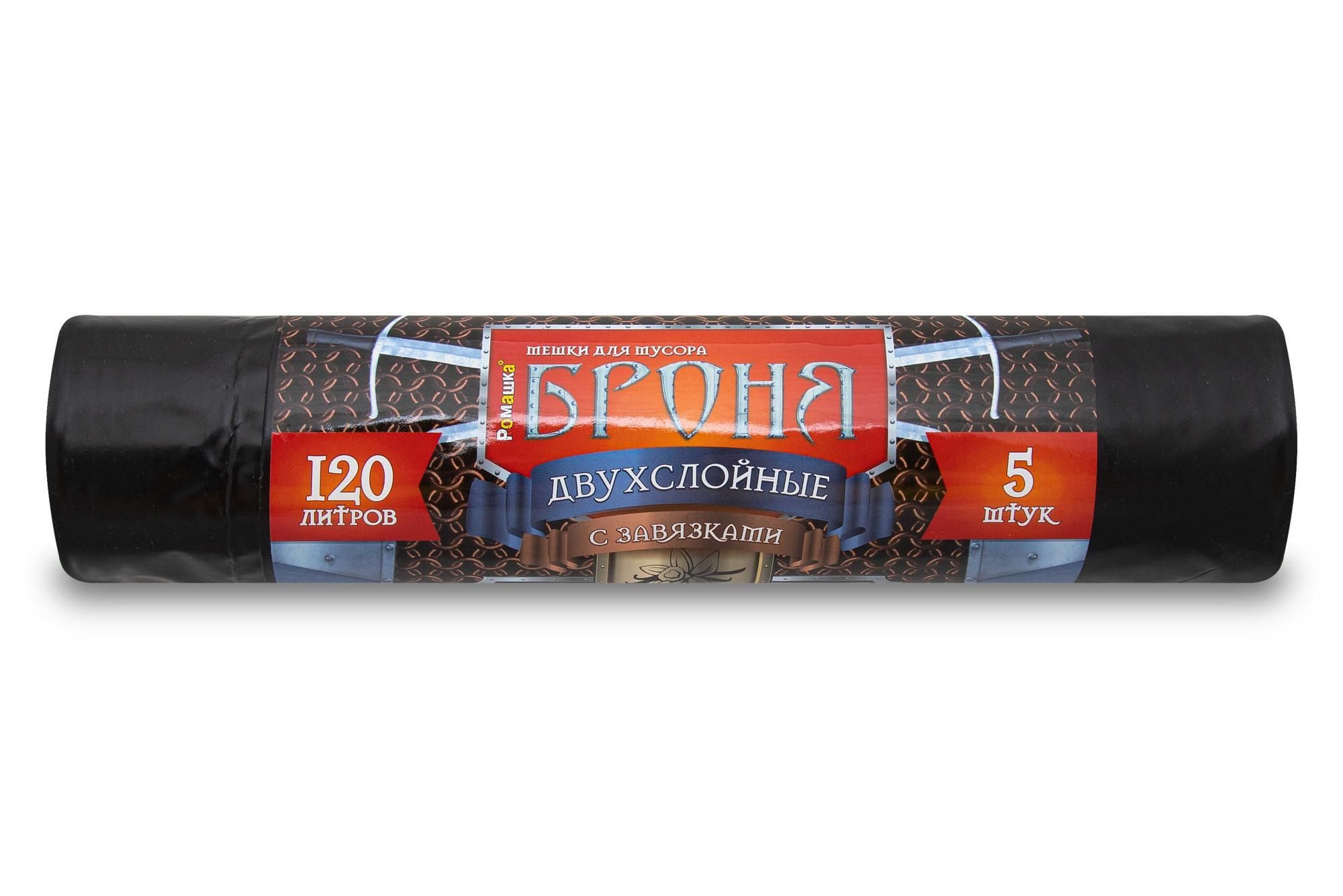 Мешок для мусора 120л рулон ПВД (70х110)-55 с завязками черный БРОНЯ 2-сл 84,2г Ромашка (5шт) 1/15 купить в Санкт-Петербурге с доставкой оптом и в розницу