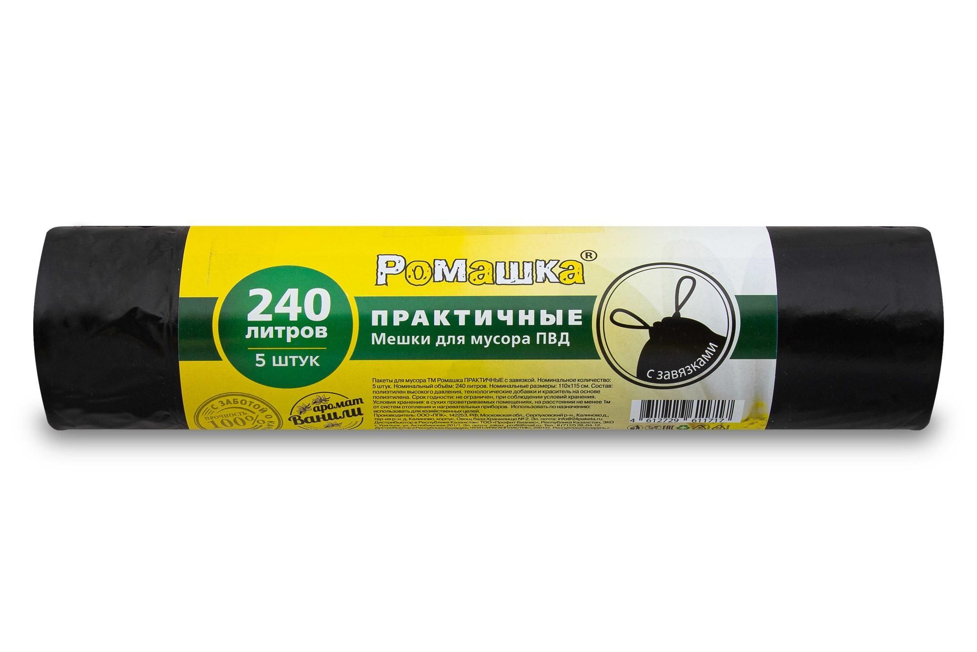 Мешок для мусора 240л рулон ПВД (110х115)-40 с завязками черн ПРАКТИЧНЫЕ 101,2г Ромашка (5шт) 1/15 купить в Санкт-Петербурге с доставкой оптом и в розницу
