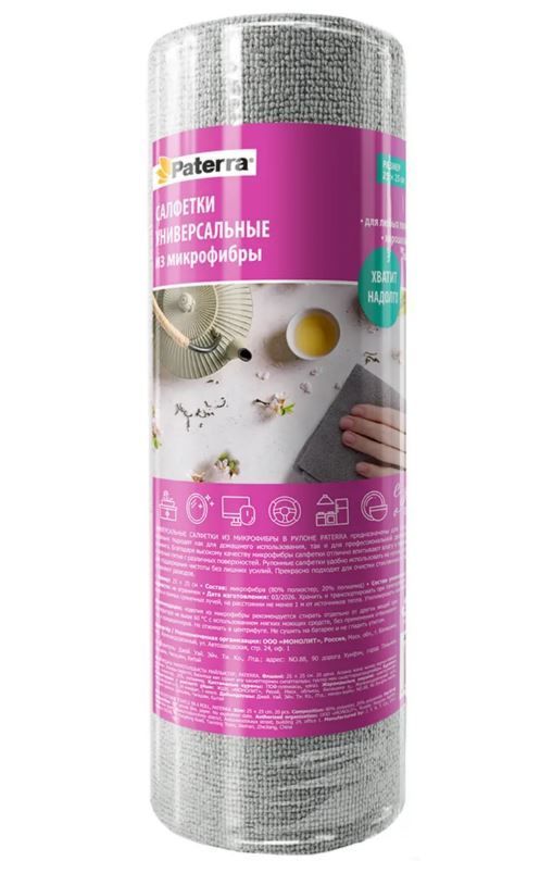 Салфетки микрофибра рулон (25х25) 20шт серая 180 г/м2 Paterra 1/12 купить в Санкт-Петербурге с доставкой оптом и в розницу