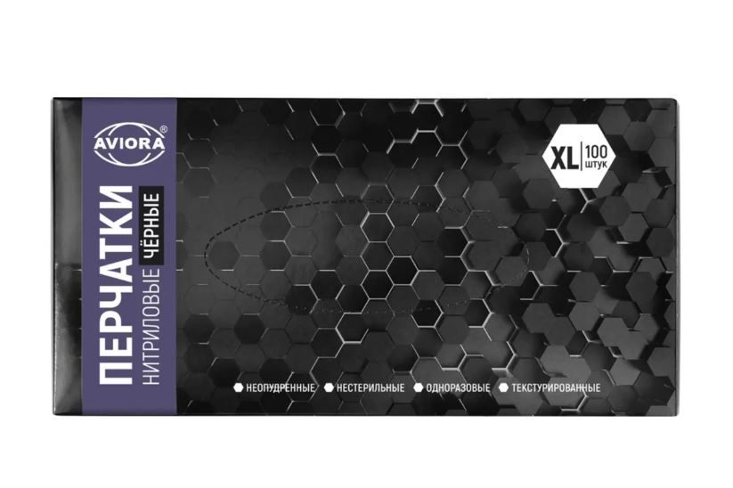 Перчатки смотровые нитриловые неопудренные Aviora черные XL 4 гр 50/500 купить оптом и в розницу в Санкт-Петербурге с доставкой