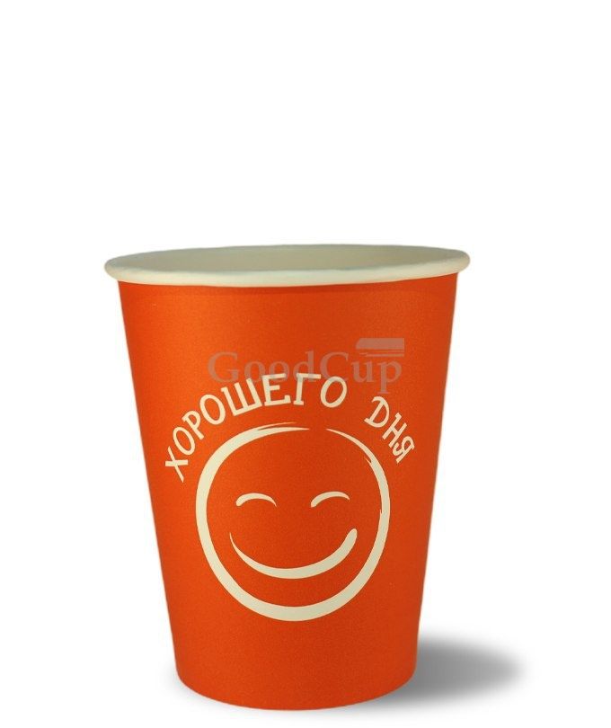 Стакан бумажный для горячего 250мл d-80 Хорошего дня оранжевый 50/1000 купить в Санкт-Петербурге с доставкой - УПАК.РФ