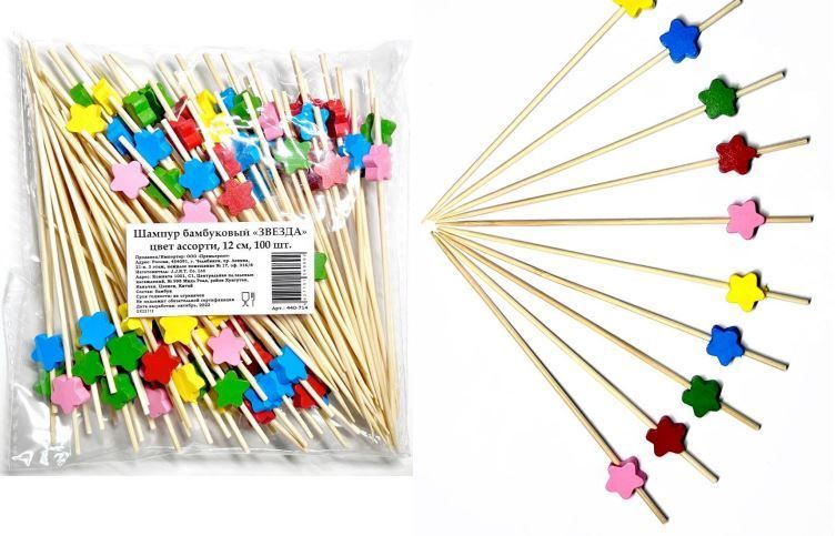 Пика для канапе Звезда 5 цветов 12см (100шт) 1/40 купить в Санкт-Петербурге с доставкой - УПАК.РФ