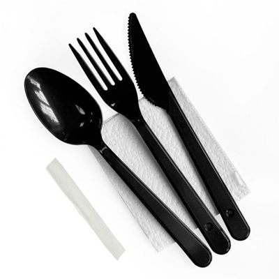 Набор одноразовой посуды №5 (вилка, столовая ложка, нож, зубочистка, салфетка) черный1/300 купить в Санкт-Петербурге с доставкой - УПАК.РФ