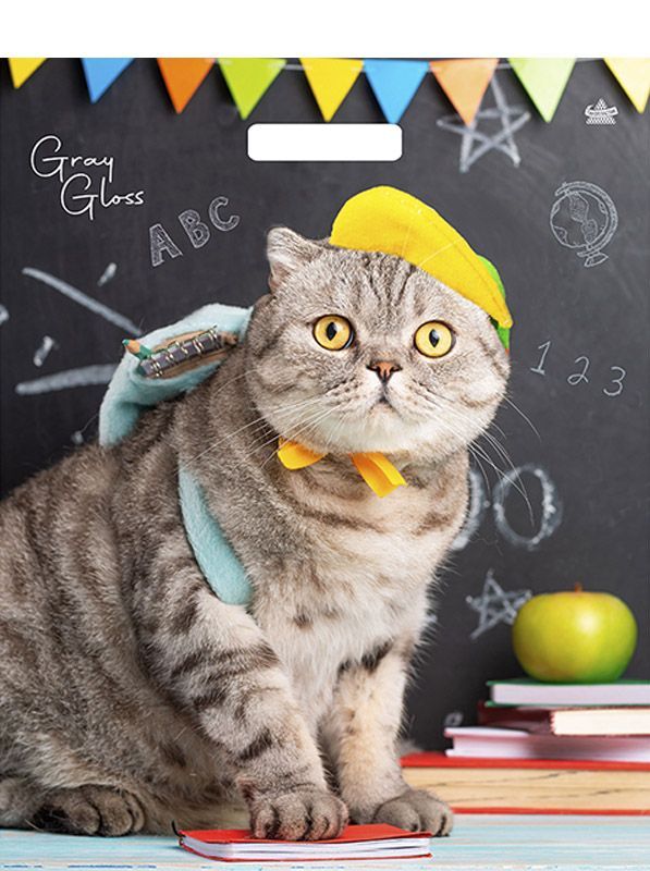 Пакет с вырубной ручкой (39х48)-50 Грэй Глосс Ученый кот Тико 50/500 купить в Санкт-Петербурге с доставкой оптом и в розницу