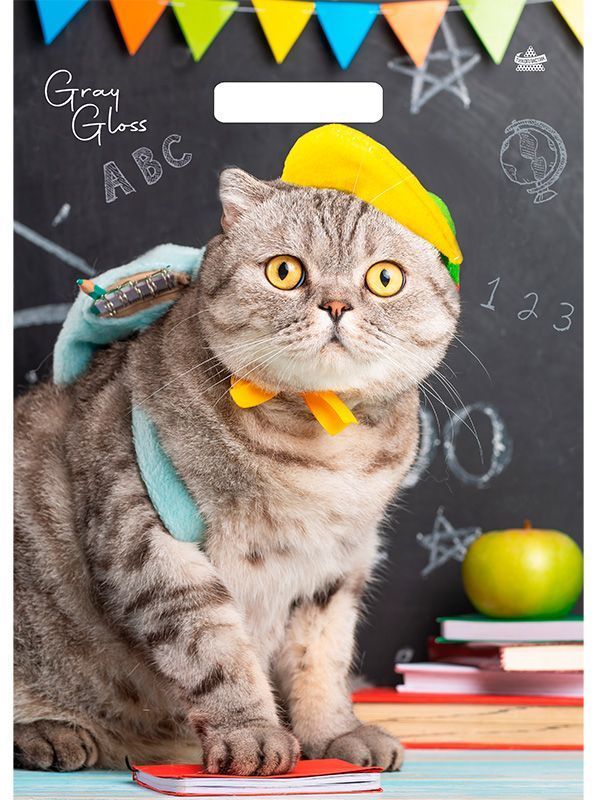 —Пакет с вырубной ручкой (31,5х43)-50 Грэй Глосс Кот Тико 50/500