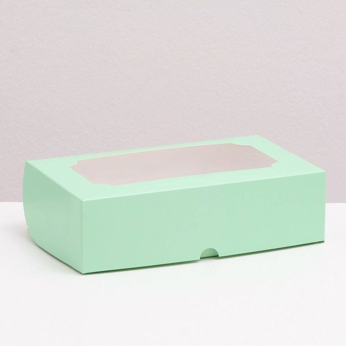 Коробка для сладостей с окном 250х150х70мм картон мятная 5/200 купить оптом и розницу с доставкой в Санкт-Петербурге