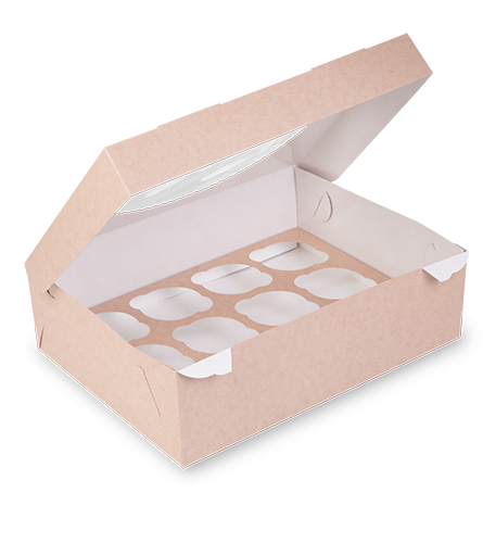 Коробка для капкейков/маффинов с окном 330х250х100мм на 12шт картон OSQ MUF 12 25/100 купить оптом и розницу с доставкой в Санкт-Петербурге
