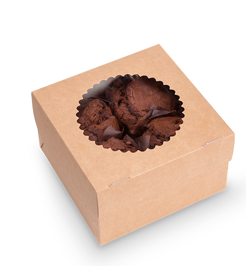 —Коробка для капкейков/маффинов с окном 160х160х100мм на 4шт картон OSQ MUF 2 25/175