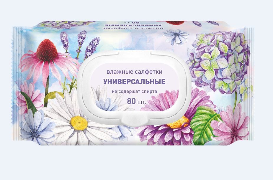 Салфетки влажные универсальные Гортензия с пластиковым клапаном (80) 1/14 купить от производителя в Санкт-Петербурге