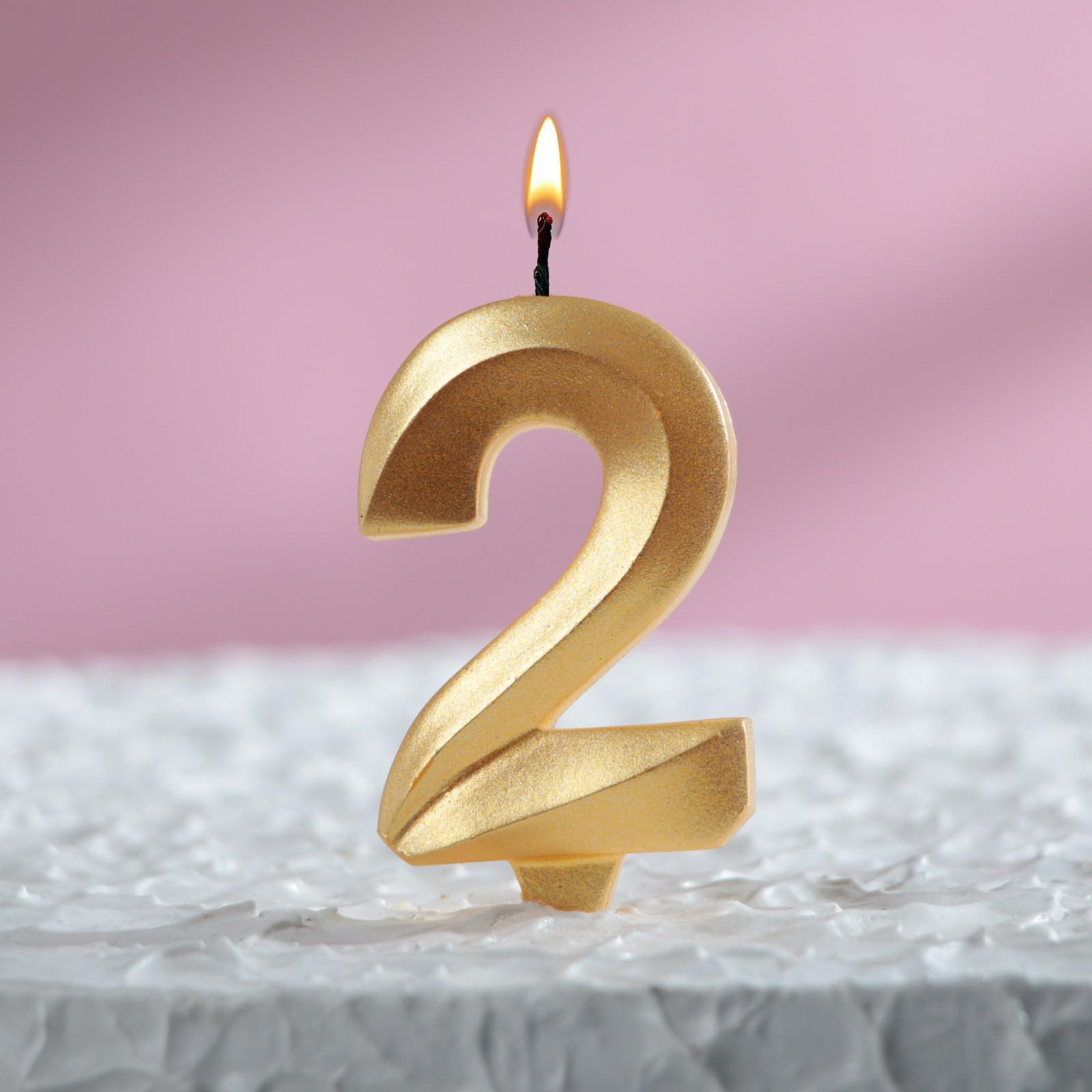 —Свеча для торта Грань Цифра 2 золотая 1/100