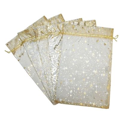 Подарочный мешок текстильный ОРГАНЗА Золотой 5 дизайнов 20х30см 1/50/250 оптом и в розницу в Санкт-Петербурге, цены в каталоге с доставкой